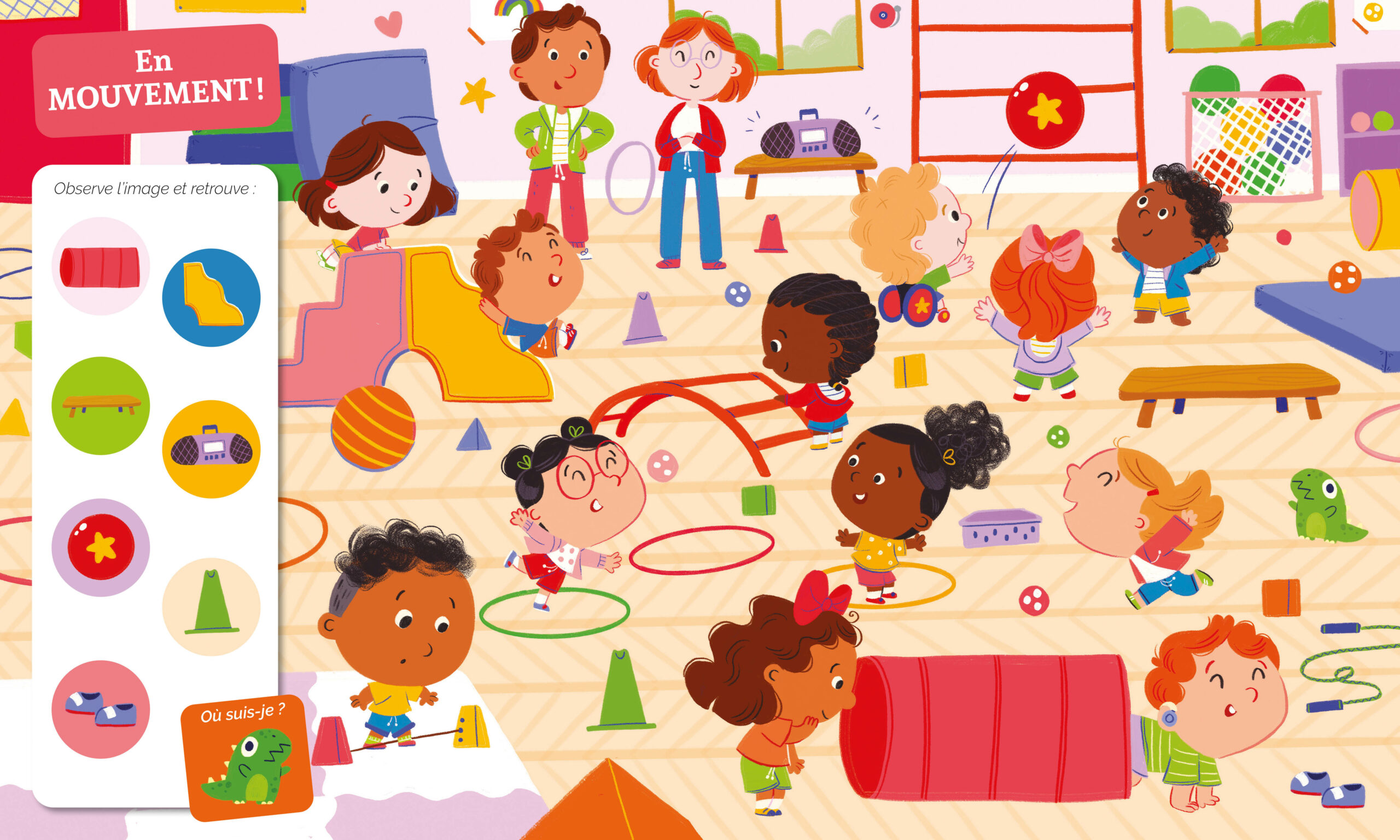 Au fil des pages, les enfants sont invités à observer attentivement les illustrations pour retrouver 7 éléments soigneusement cachés, ainsi qu’une petite mascotte dissimulée dans chaque décor. Ce jeu de recherche stimule le sens de l’observation, la concentration et la mémoire visuelle, tout en enrichissant le vocabulaire grâce à la nomination des objets et des situations.
