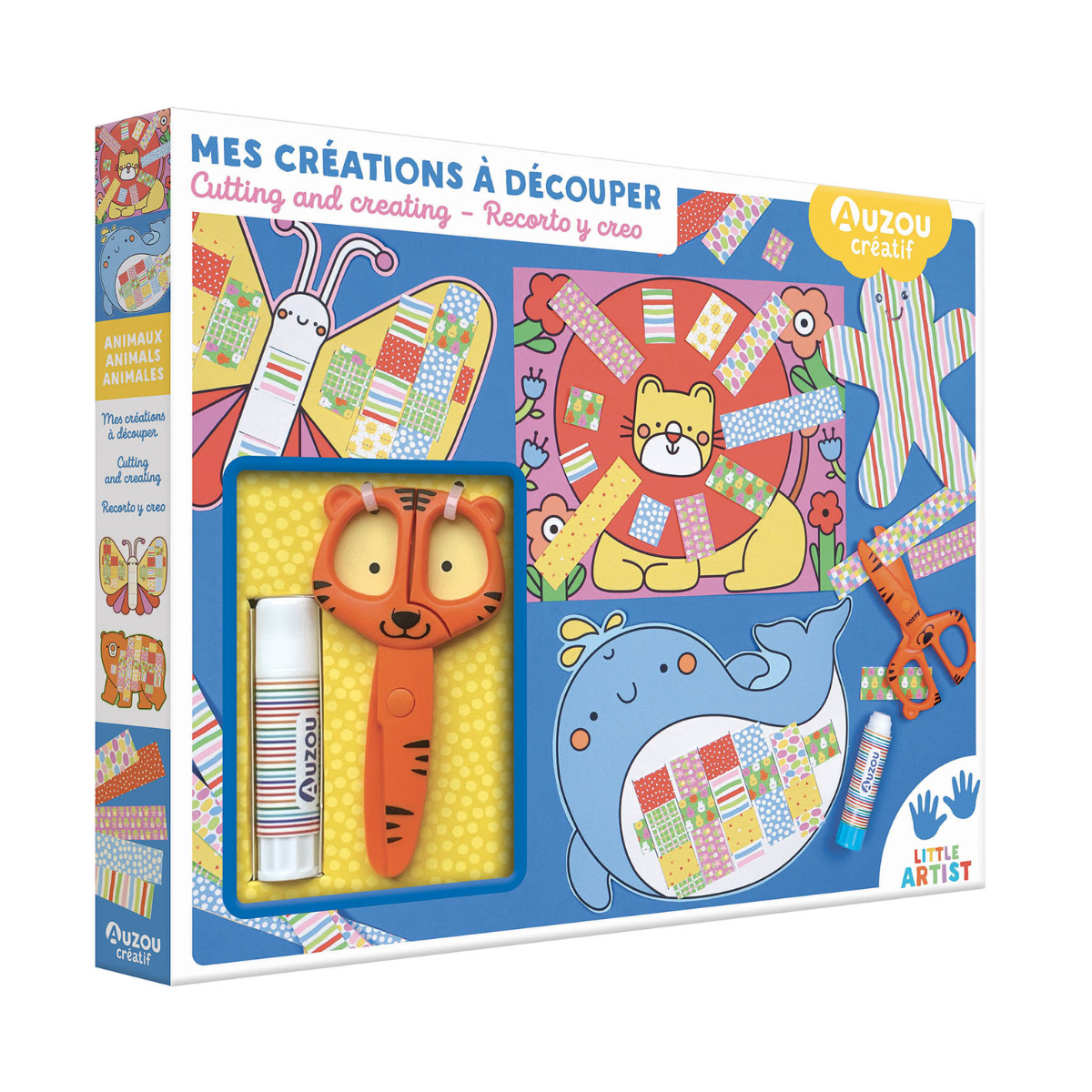 Un coffret contenant une paire de ciseaux, un tube de colle et 15 feuilles pour réaliser les activités suivantes : découpage, collage, pliage et tressage. Tout pour s’amuser et personnaliser d’adorables tableaux d’animaux !