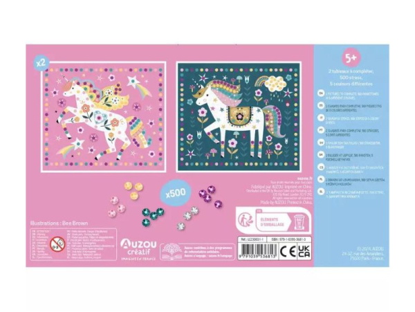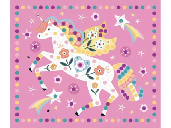 Facile à utiliser, cette activité repose sur le principe simple et amusant du collage de strass. L’enfant choisit un tableau représentant une licorne, puis vient y apposer, un à un, de petits strass scintillants aux couleurs variées. Au fil de la création, les formes se révèlent et les licornes se parent de mille feux, pour un résultat magique et spectaculaire.