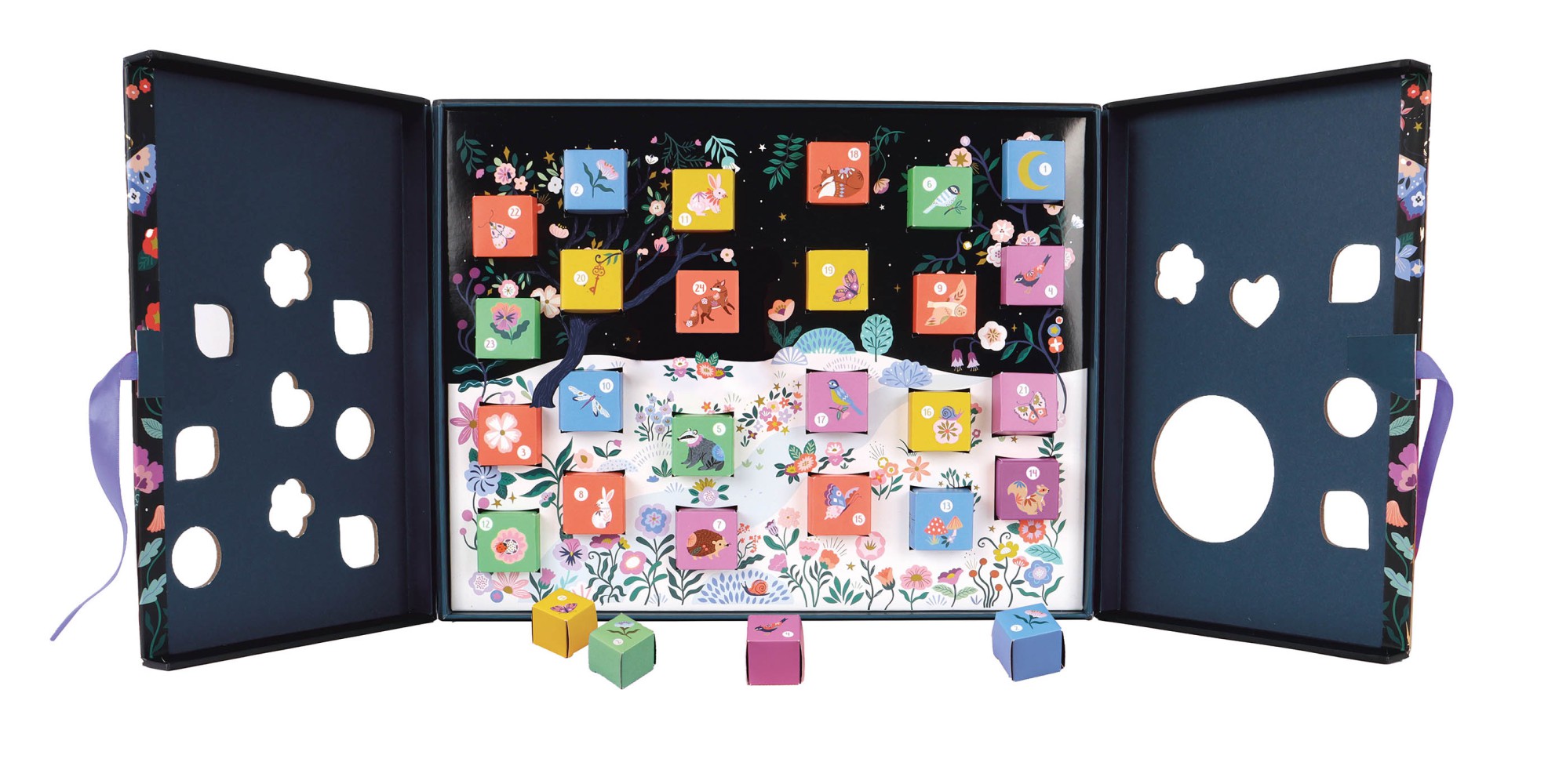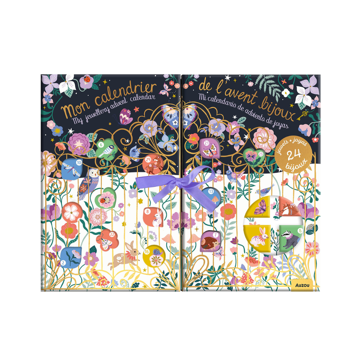 Un magnifique calendrier de l’avent bijoux 100 % bijoux. Il se présente sous la forme de 24 petites boites illustrées à ouvrir chaque jour.