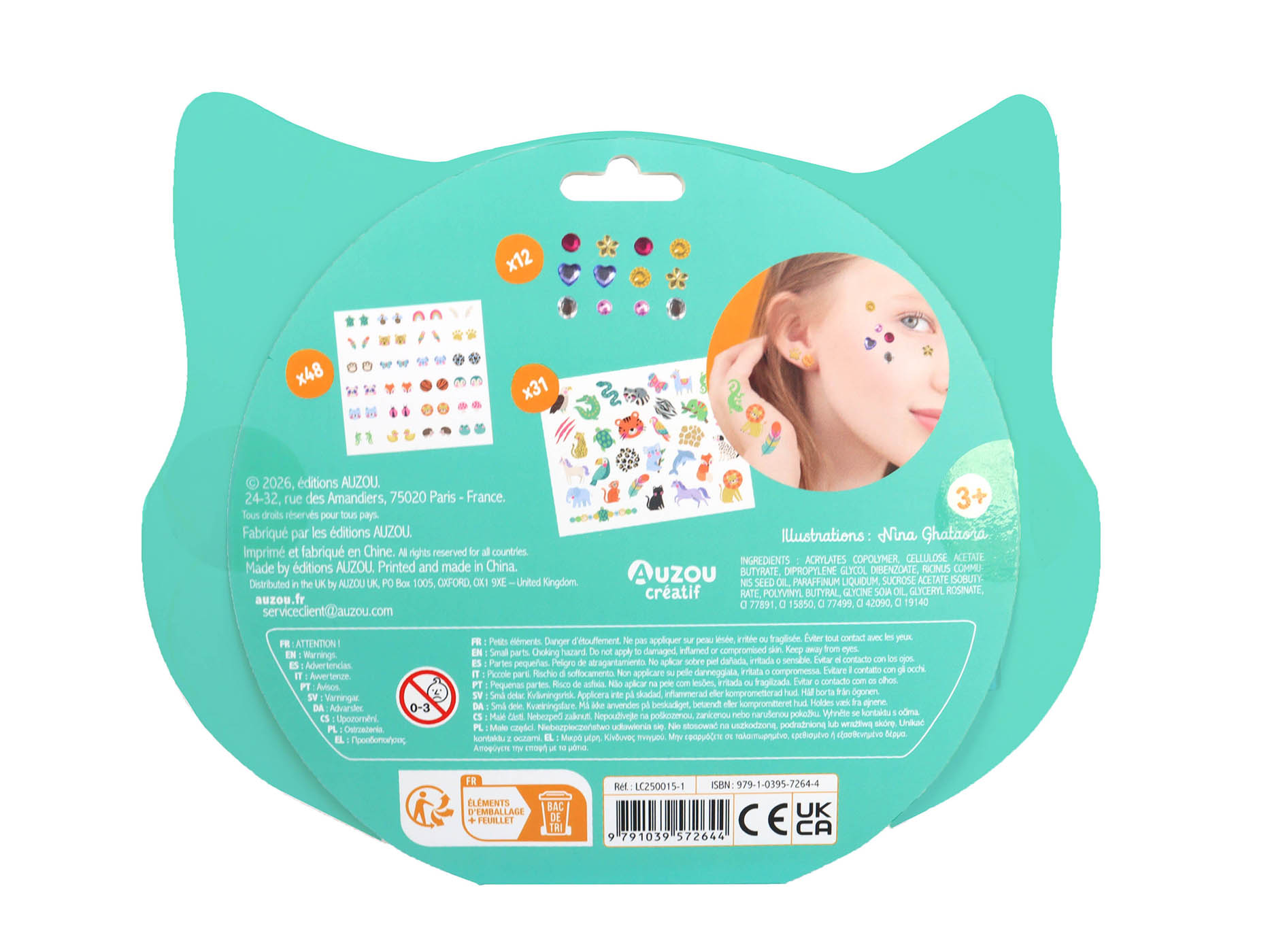 Une pochette qui propose : des strass de visage, des tattoos et des boucles d’oreilles autocollantes qui brillent !