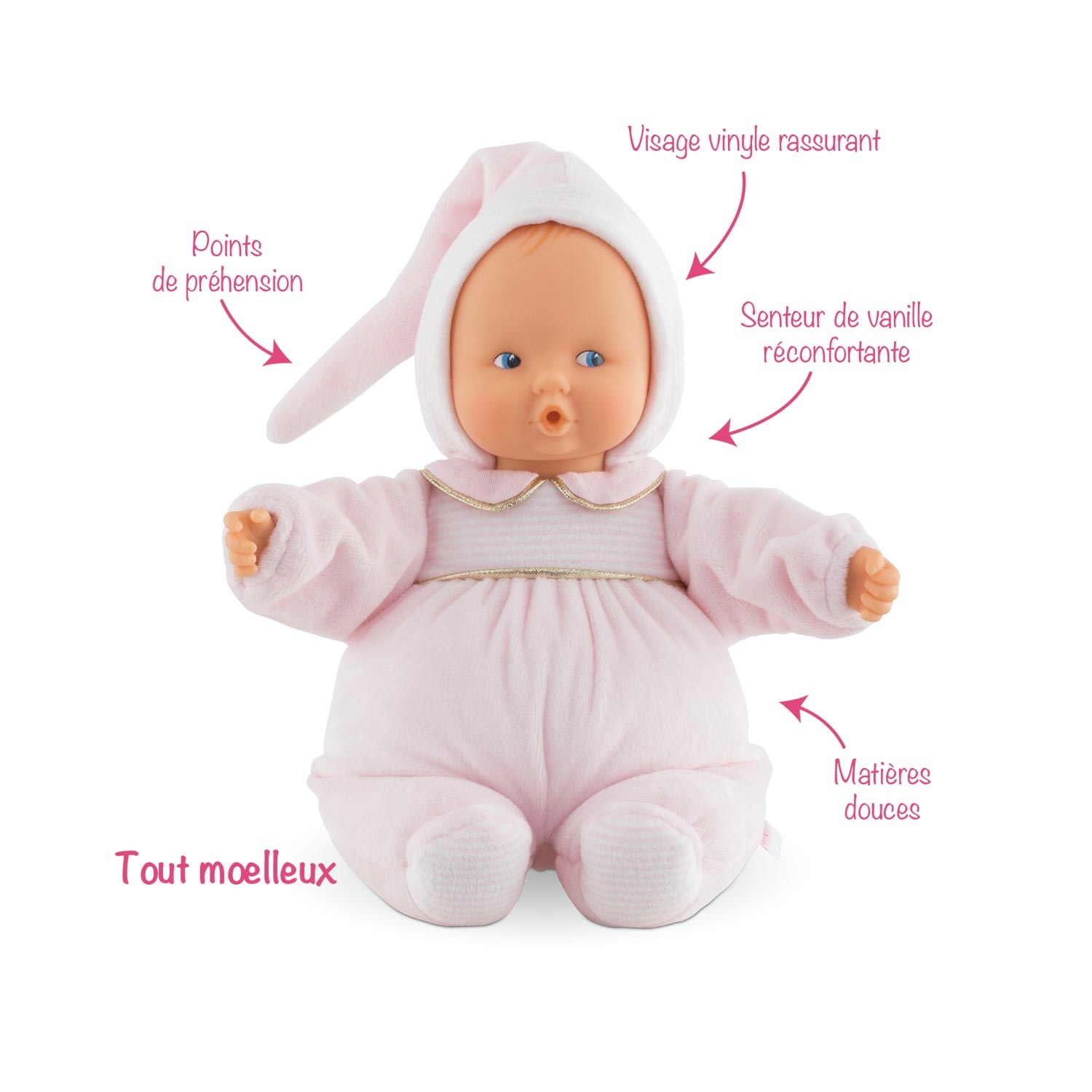 Faisant partie de la gamme Mon Doudou Corolle : Toi et moi, pour toujours, Babipouce accompagne l’enfant dans ses premiers moments d’autonomie affective, offrant douceur, sécurité et complicité.