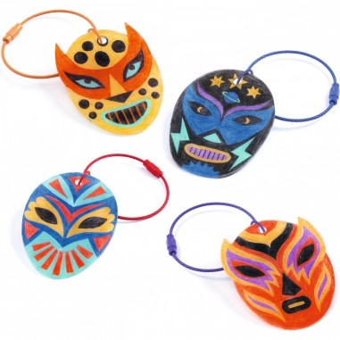 Offrez à votre enfant une activité manuelle spectaculaire avec ce coffret créatif pour fabriquer 5 porte-clés colorés à l’effigie de masques de lutteurs mexicains ! Ludique, simple à réaliser et visuellement impressionnante, cette activité plaira aux enfants fans de dessin, de bricolage et de super-héros masqués.