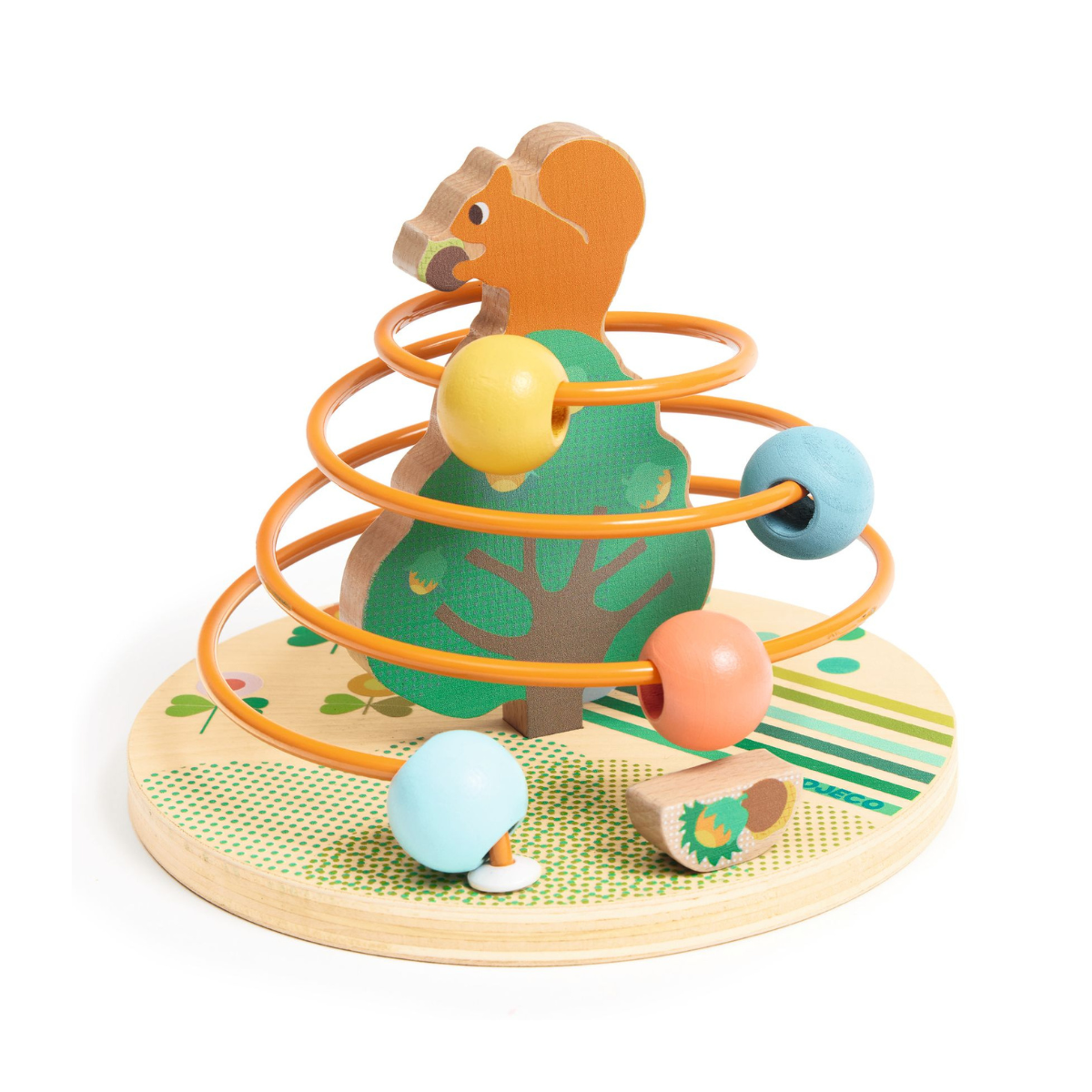 RollNut est un boulier en bois original qui accompagne les tout-petits dès 18 mois dans leur développement moteur et leur éveil sensoriel. Conçu avec soin, il se compose d’une tige métallique en forme de cône sur laquelle quatre perles colorées se déplacent librement. L’enfant peut les faire glisser, tourner, monter et redescendre tout au long de la tige dans un mouvement circulaire captivant, reliant ainsi l’écureuil à ses précieuses noisettes.