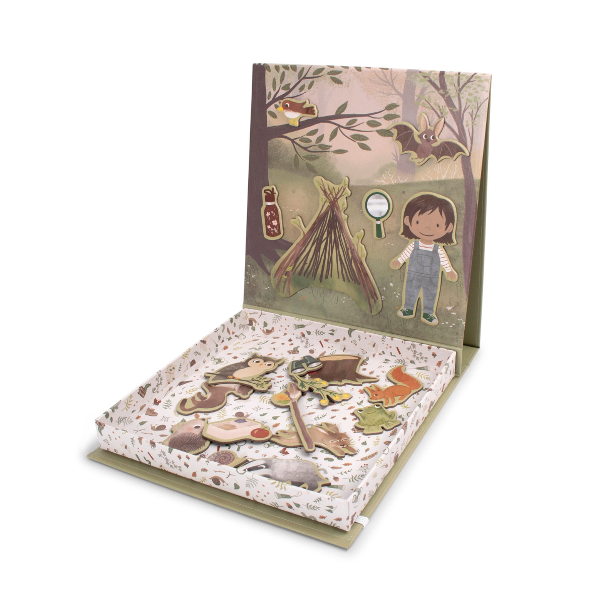 Plongez au cœur d’une aventure en pleine nature avec ce jeu magnétique créatif, spécialement conçu pour stimuler l’imagination des enfants. L’histoire commence avec un petit aventurier qui a construit son propre fort dans les bois. Très vite, de nombreux animaux sympathiques viennent lui rendre visite : chacun apporte sa touche à cette escapade sauvage, invitant votre enfant à inventer, raconter et réinventer mille et une histoires.