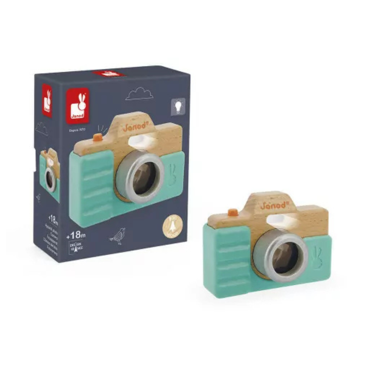 Derrière l’objectif comme les grands ! Offrez à votre enfant son tout premier appareil photo jouet, un adorable jouet d’imitation en bois et silicone, parfait dès 18 mois. Plus vrai que nature, il ravira les petits photographes en herbe qui adoreront imiter les adultes et capturer leurs propres moments d’aventure.