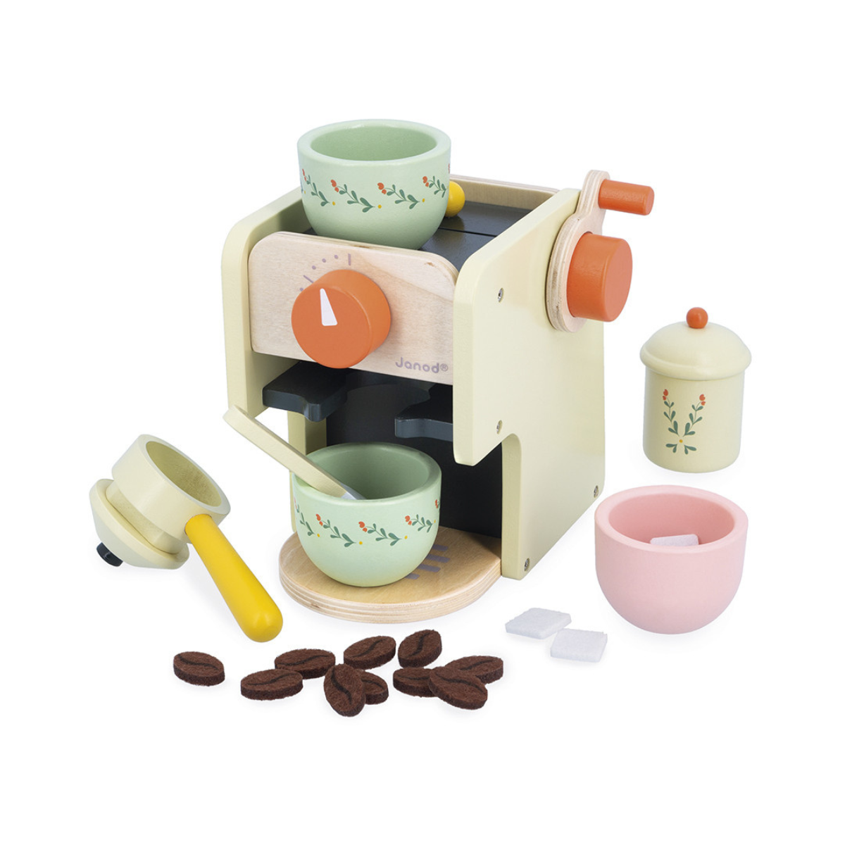 Un petit café ? Avec ce set d’imitation, les enfants dès 3 ans peuvent devenir de véritables baristas ! Parfait pour compléter une cuisine en bois ou une dinette, ce jouet permet aux enfants d’imiter les gestes des adultes tout en stimulant leur imagination et leur motricité.
