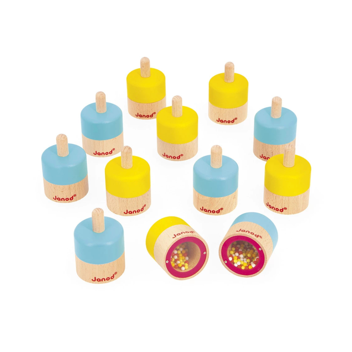Les sons à reconnaître sont variés et stimulants : clochette, sable, billes en bois ou en plastique, éléments en bois ou en carton… Une véritable exploration sensorielle qui éveille la curiosité. La prise en main des pièces, leur taille et leur poids ont été spécialement étudiés pour les petites mains.