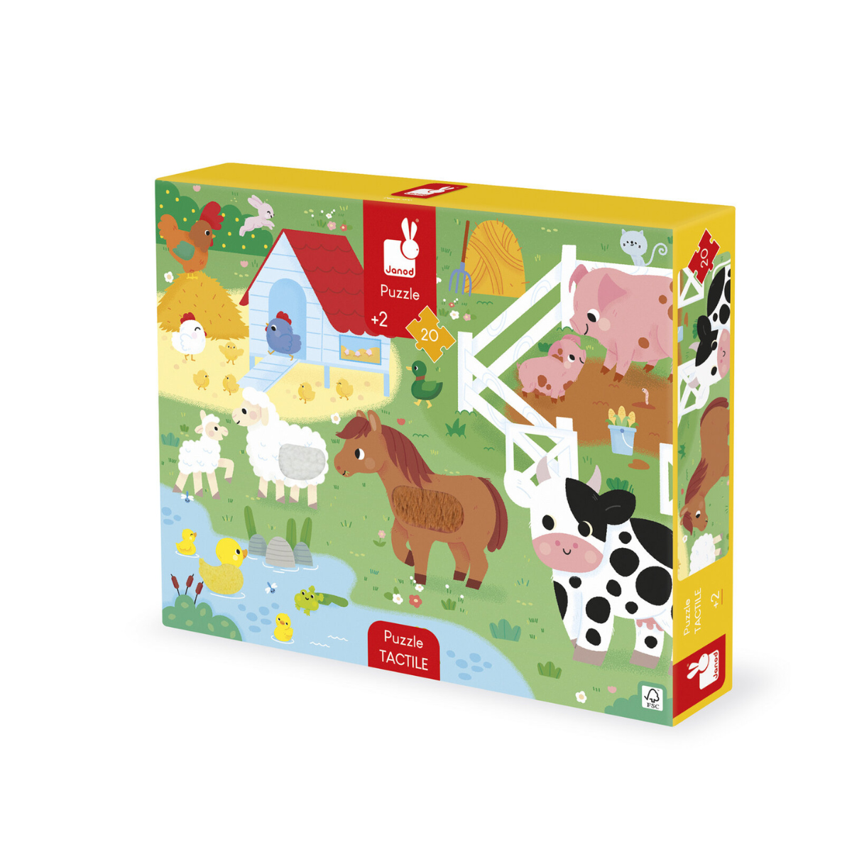 Fabriqué à partir de matériaux certifiés FSC® et de matériaux contrôlés, ce puzzle s’inscrit dans une démarche responsable et respectueuse de l’environnement. Il allie qualité, durabilité et sécurité, pour offrir un jouet fiable et durable. Véritable outil d’éveil, ce puzzle tactile géant est un cadeau idéal pour apprendre en s’amusant, tout en découvrant les animaux de la ferme à travers les sens.