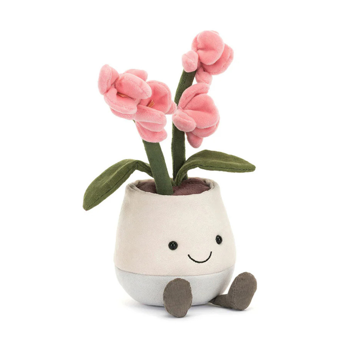 Apportez une touche florale et pleine de tendresse à votre intérieur avec l’adorable peluche Amuseables Pink Orchid de Jellycat. Avec ses magnifiques fleurs d’un rose éclatant, cette orchidée peluche ne manquera pas d’attirer les regards et de séduire petits et grands. Son feuillage vert en suédine, d’une douceur exceptionnelle, repose sur des tiges solides, le tout parfaitement installé dans un petit pot au design moderne. Mais ce qui rend cette peluche encore plus attachante, ce sont ses adorables petites jambes en cordon gris anthracite et son large sourire espiègle, qui lui donnent un charme irrésistible.