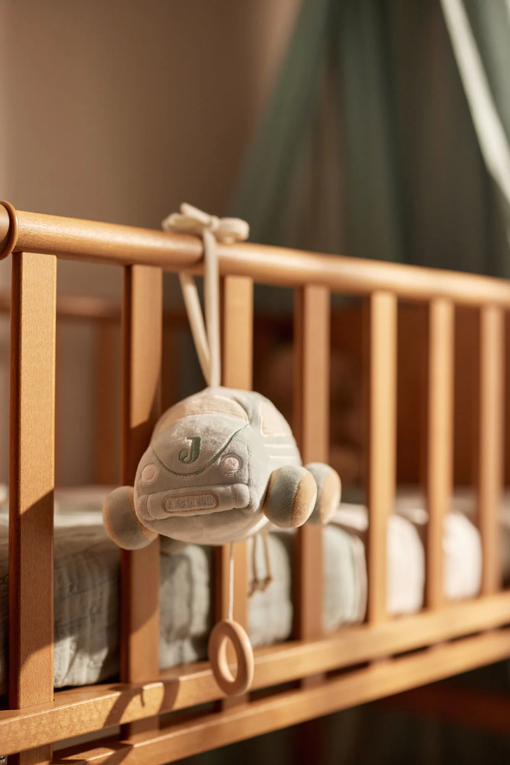 Faites rêver votre tout-petit avec notre adorable mobile musical On the Go en forme de petite voiture ! Conçu pour accompagner les doux instants de repos de bébé, ce mobile plein de tendresse est à la fois ludique et apaisant. Sa forme de voiture aux lignes arrondies et à la teinte Sea Green invite à la détente, tandis que ses roues couleur biscuit et ses fenêtres en tissu côtelé ajoutent une touche de charme et de texture.