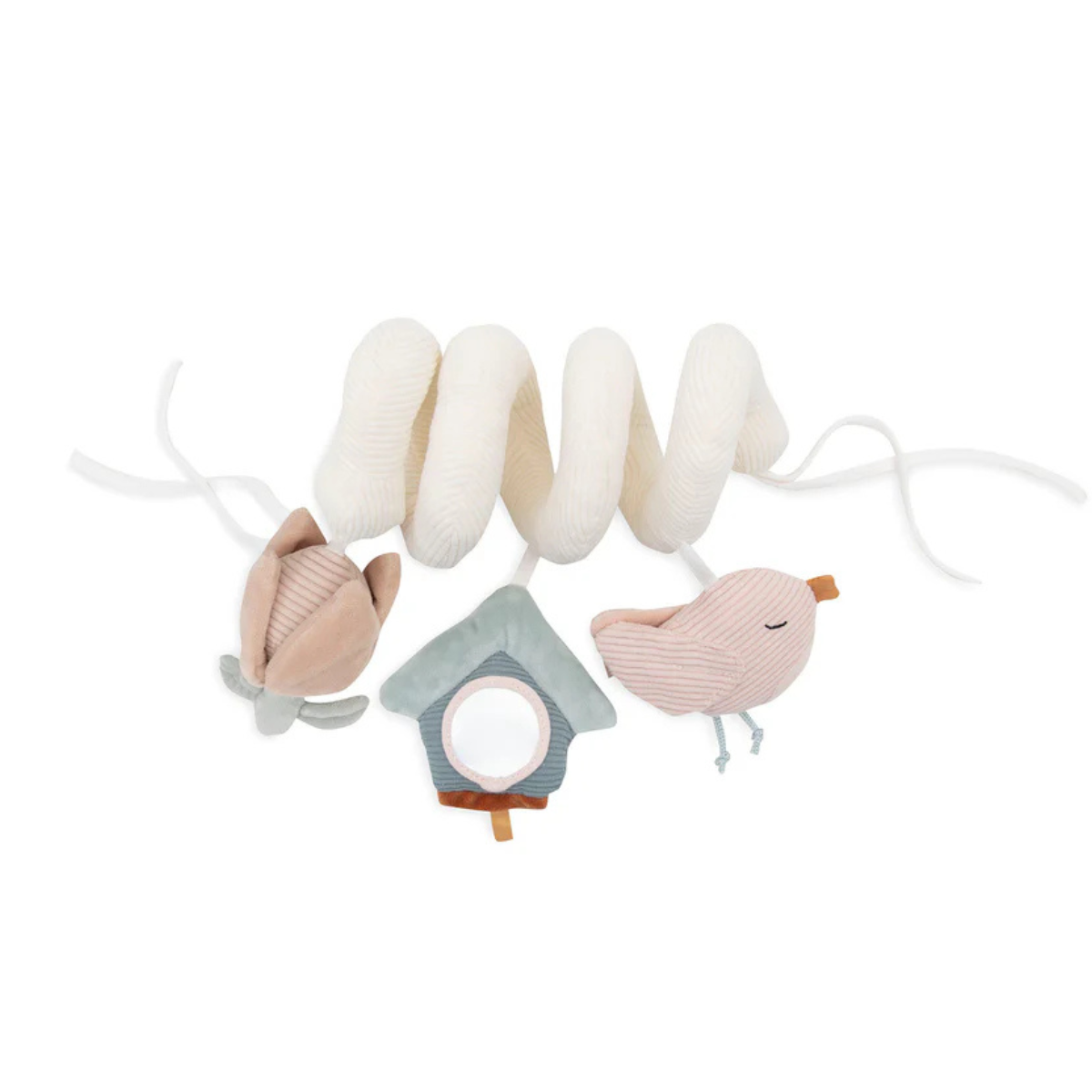 Pratique et polyvalente, cette spirale d’activité se fixe aisément grâce aux boucles d’attache situées de chaque côté. Que ce soit sur le parc, le berceau ou le maxi cosi, elle s’adapte à tous les environnements, offrant ainsi une distraction bienvenue lors des promenades ou des moments de repos. Sa conception ingénieuse garantit non seulement la sécurité de l’enfant, mais aussi la tranquillité d’esprit des parents.
