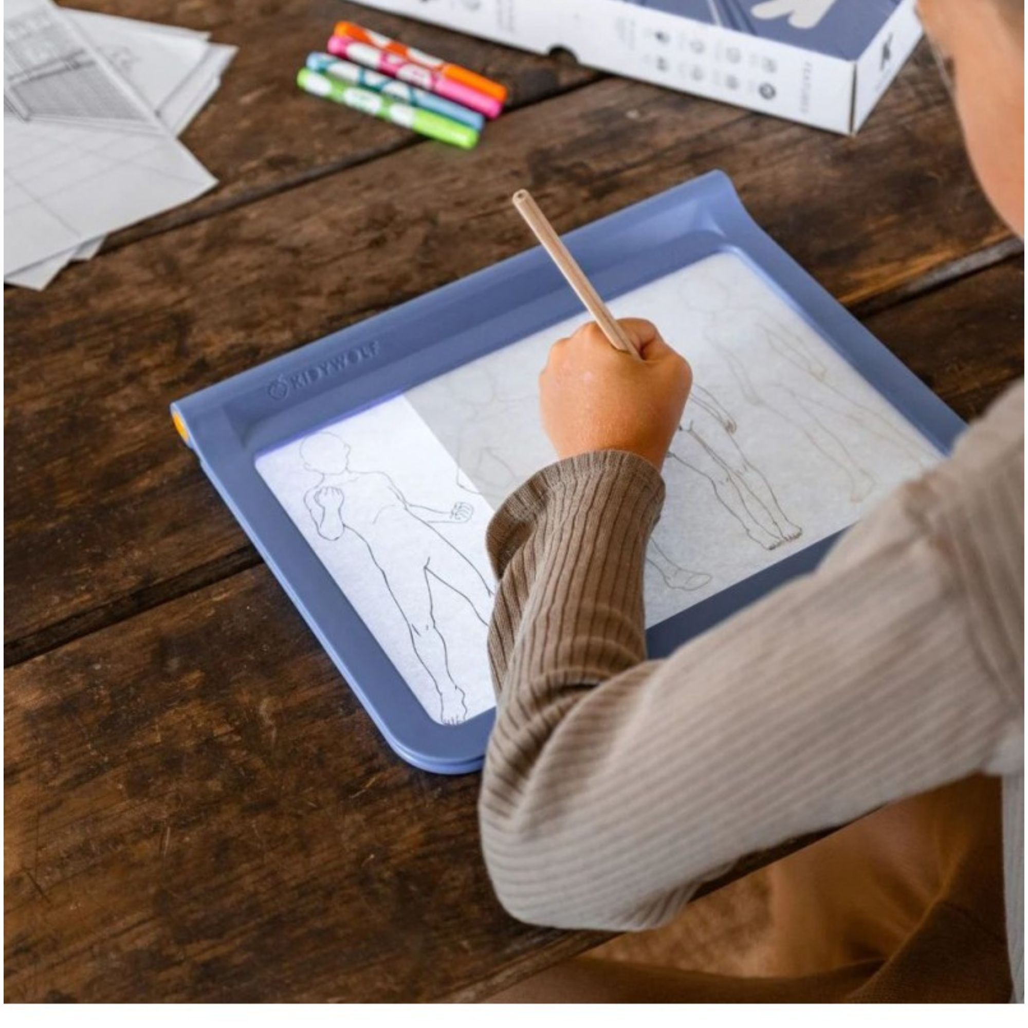 Dotée d’une double face lumineuse, la tablette propose une surface pour décalquer et une autre pour des dessins fluorescents amusants, offrant une expérience de dessin guidée et libre. Son format nomade, léger et compact, permet à votre enfant de l’emporter facilement partout : chez des amis, en vacances ou même au restaurant. La progression pas à pas qu’offre K-DRAW PRO valorise l’apprentissage, permettant à l’enfant de voir évoluer son style et d’être fier de ses créations.