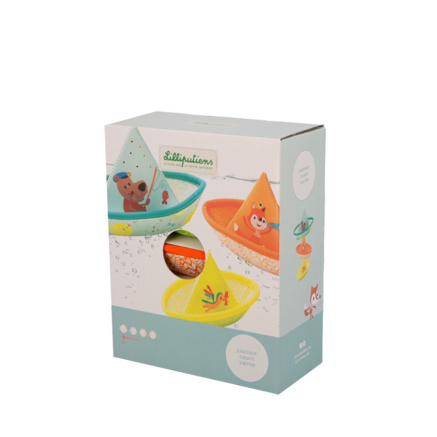 Prêts pour une petite régate à l’heure du bain ? Avec ce lot de trois bateaux flottants, l’heure du bain devient un vrai terrain d’aventure et de jeu pour les bébés dès 6 mois. Chaque voilier est accompagné d’un compagnon charmant : César l’ours, Alice la renarde et un martin-pêcheur, chacun embarqué sur son bateau pour vivre des histoires passionnantes.