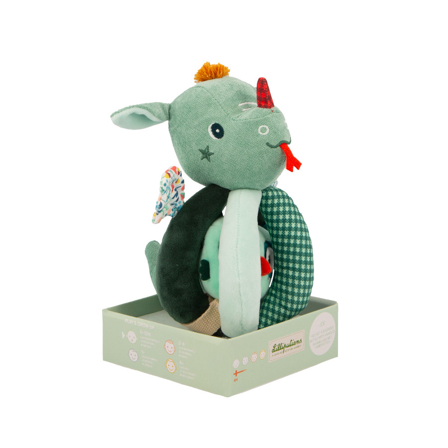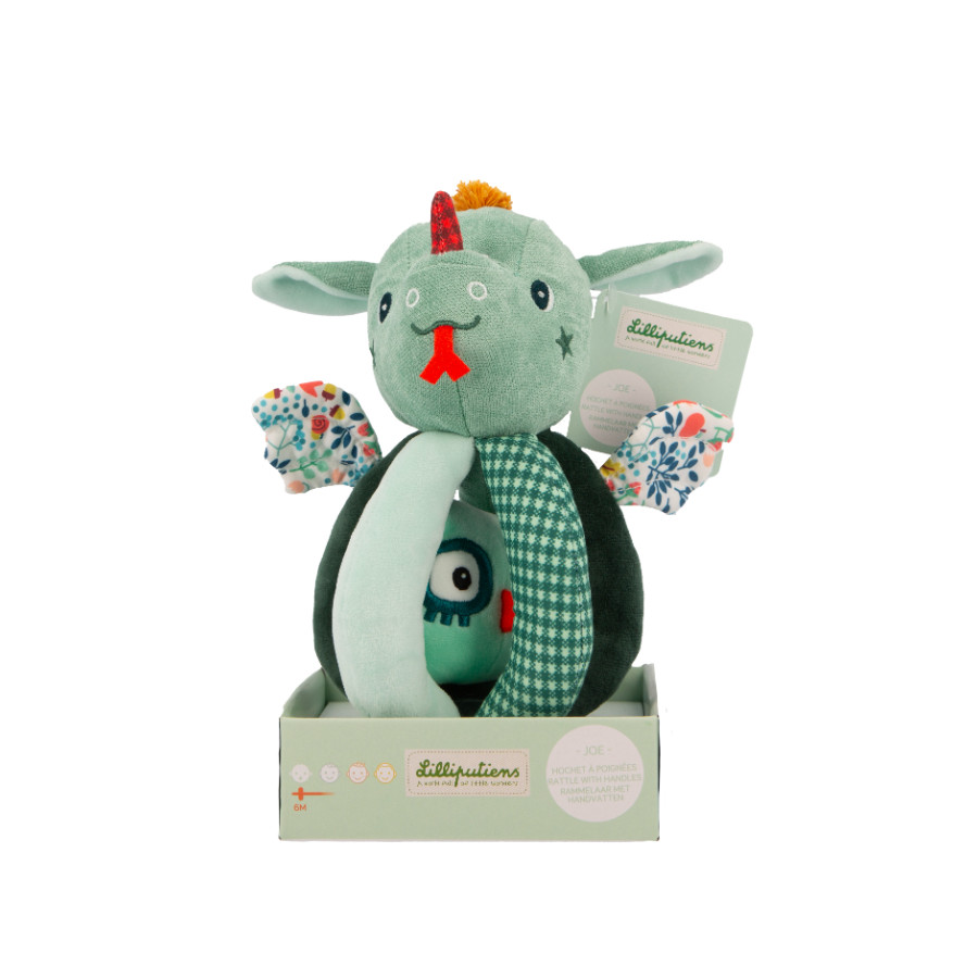Joe et son ami le hibou forment un duo irrésistible pour l’éveil de bébé ! Conçu pour les enfants dès 6 mois, ce gros hochet à poignées offre quatre activités sensorielles captivantes qui stimulent la vue, l’ouïe et le toucher. La première activité consiste en un hochet intégré à la tête de Joe le dragon, à faire tinter encore et encore, idéal pour initier bébé aux sons et aux rythmes. Ensuite, les cinq poignées réparties sur le jouet présentent des textures variées, des motifs contrastés et même du papier bruissant à explorer, offrant un véritable voyage sensoriel. Un second hochet se cache à l’intérieur du petit hibou, accessible en plongeant la main dans le corps de Joe, encourageant bébé à développer sa motricité fine tout en s’amusant.