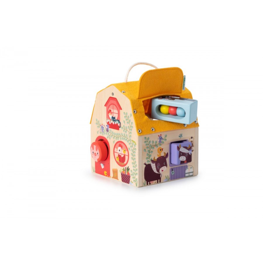 Bienvenue à la ferme ! Découvrez un monde enchanteur avec cette maison sonore en bois accompagnée de ses quatre personnages adorables, conçue pour éveiller la curiosité et l’émerveillement des enfants dès l’âge de 12 mois. Chaque face de cette maisonnette, y compris son toit, offre une multitude d’activités ludiques et amusantes, invitant les petits explorateurs à s’amuser tout en apprenant.