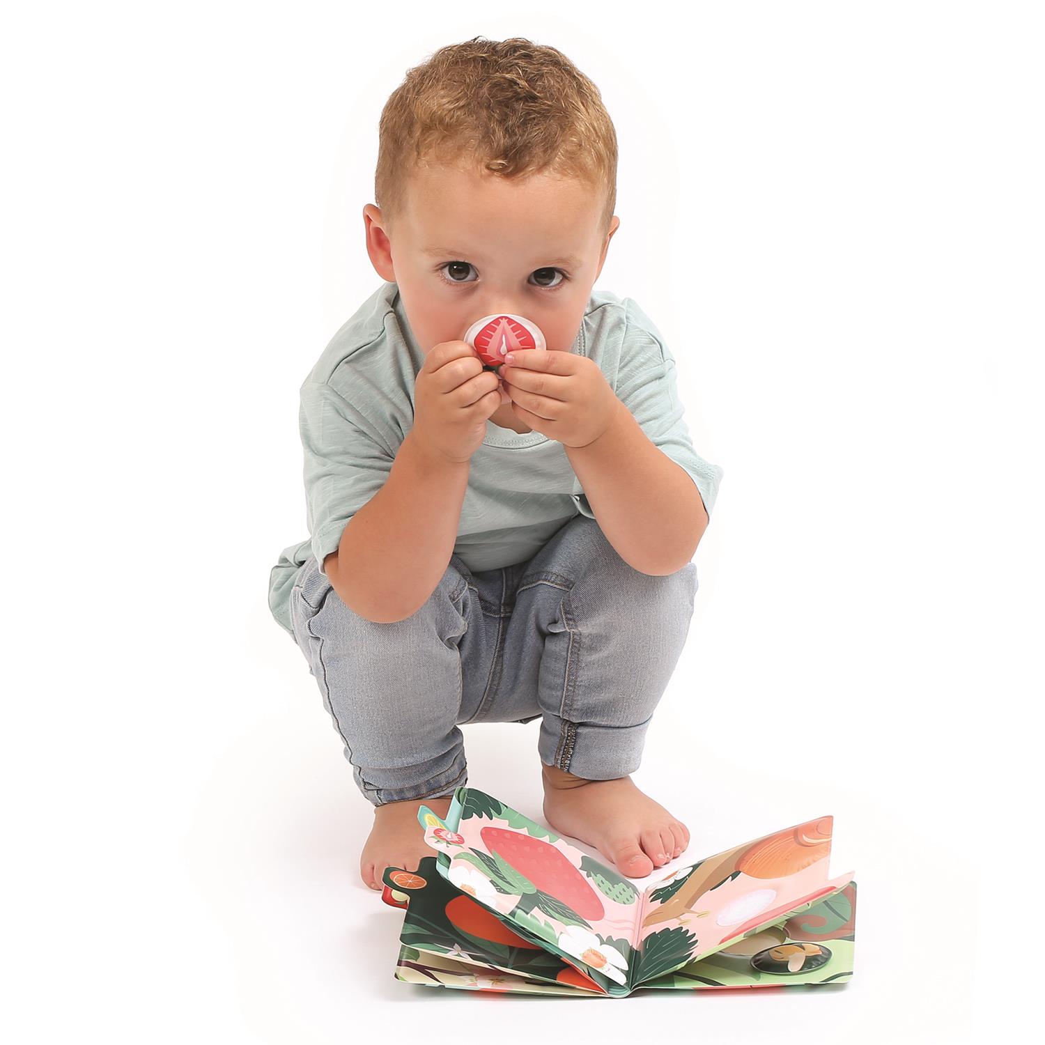 À l’intérieur, chaque page invite l’enfant à explorer la nature et à rencontrer des animaux amusants qui présentent fièrement leur fruit préféré. Mais la surprise ne s’arrête pas là : une délicieuse odeur s’échappe de chaque page ! Les tout-petits adoreront sentir, observer et nommer ces parfums fruités tout en découvrant leur propre fruit favori. À travers ces interactions, l’enfant développe naturellement son vocabulaire en apprenant les noms des animaux, des fruits, les couleurs et bien plus encore.