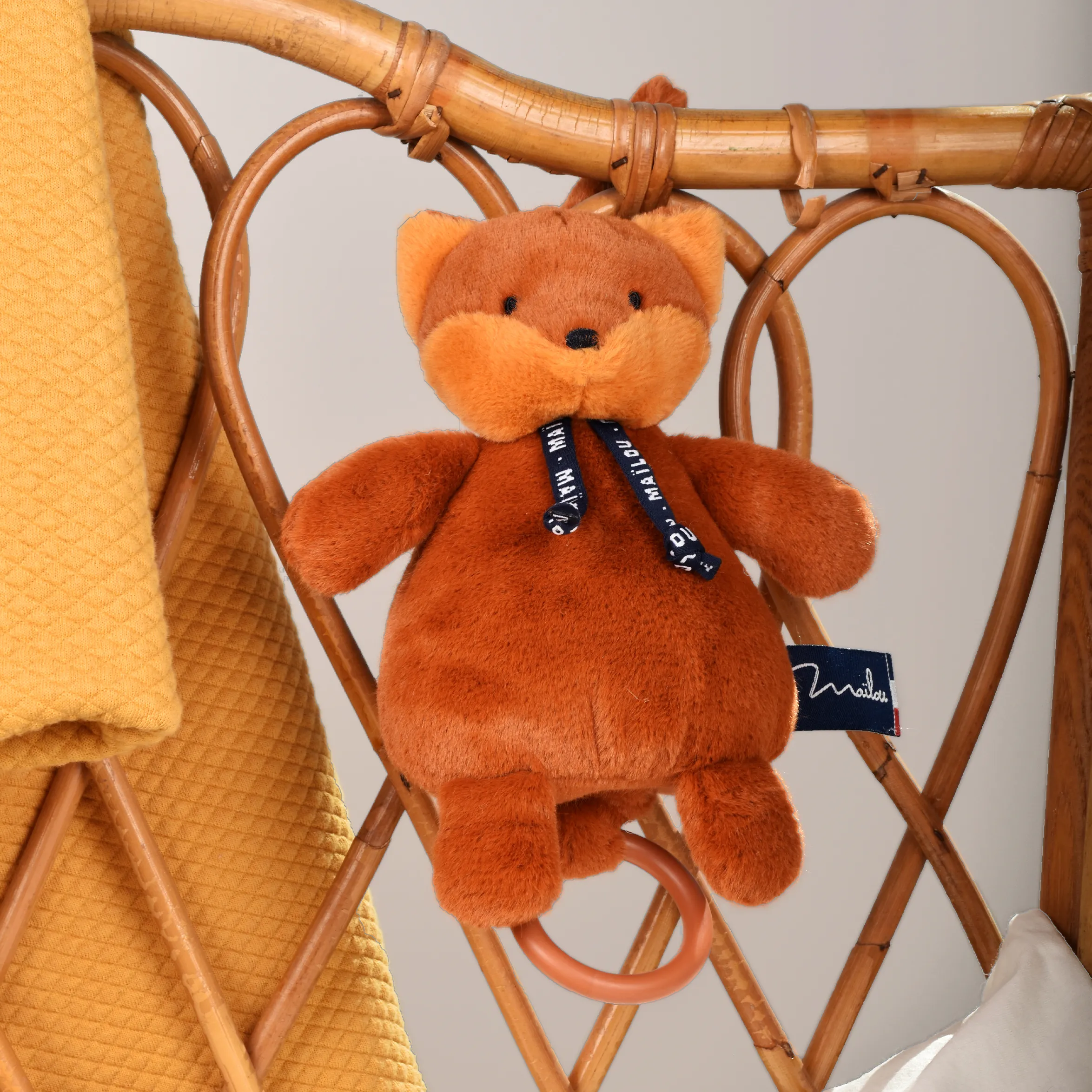 Choisir le Renard Dorlotin boîte à musique Maïlou Tradition, c’est faire le choix d’une peluche made in France, composée à 100 % de polyester, douce au toucher, facile d’entretien (lavage en surface et séchage naturel) et ornée d’un ruban bleu marine signé Maïlou. C’est aussi soutenir une fabrication locale qui valorise le savoir-faire artisanal et la transmission de la douceur au fil des générations.