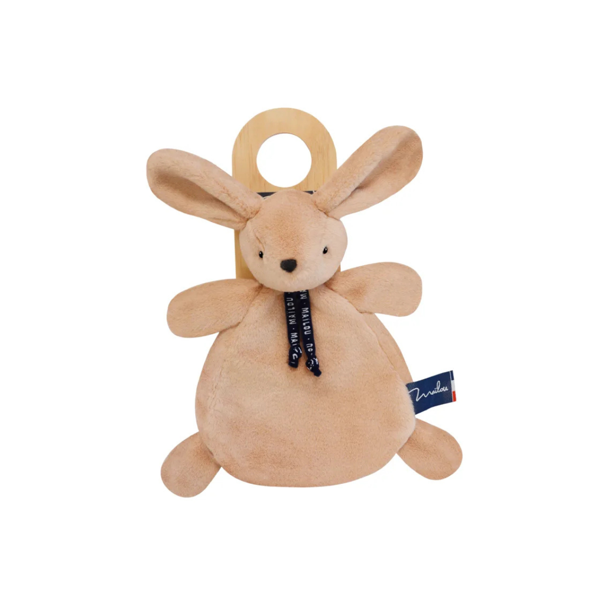 Avec son format de 22 cm, le Doudou plat Lapin beige est parfaitement adapté aux petites mains. Léger et facile à attraper, il se glisse aisément dans un sac, un lit ou une poussette, afin de suivre bébé à la maison comme en balade. Ses yeux en bille et son ruban bleu marine signé Maïlou apportent une touche délicate et raffinée, tout en conservant une grande sobriété.