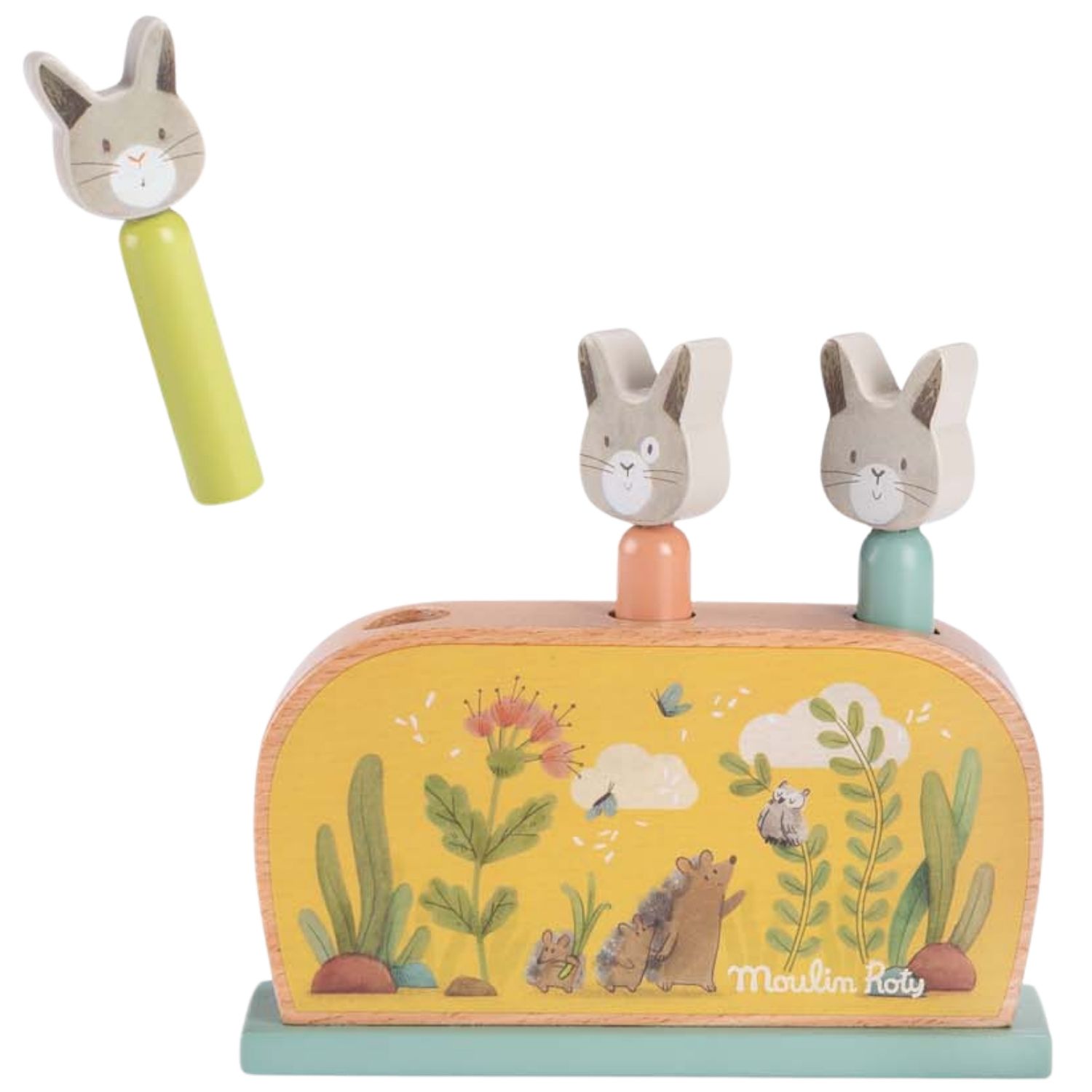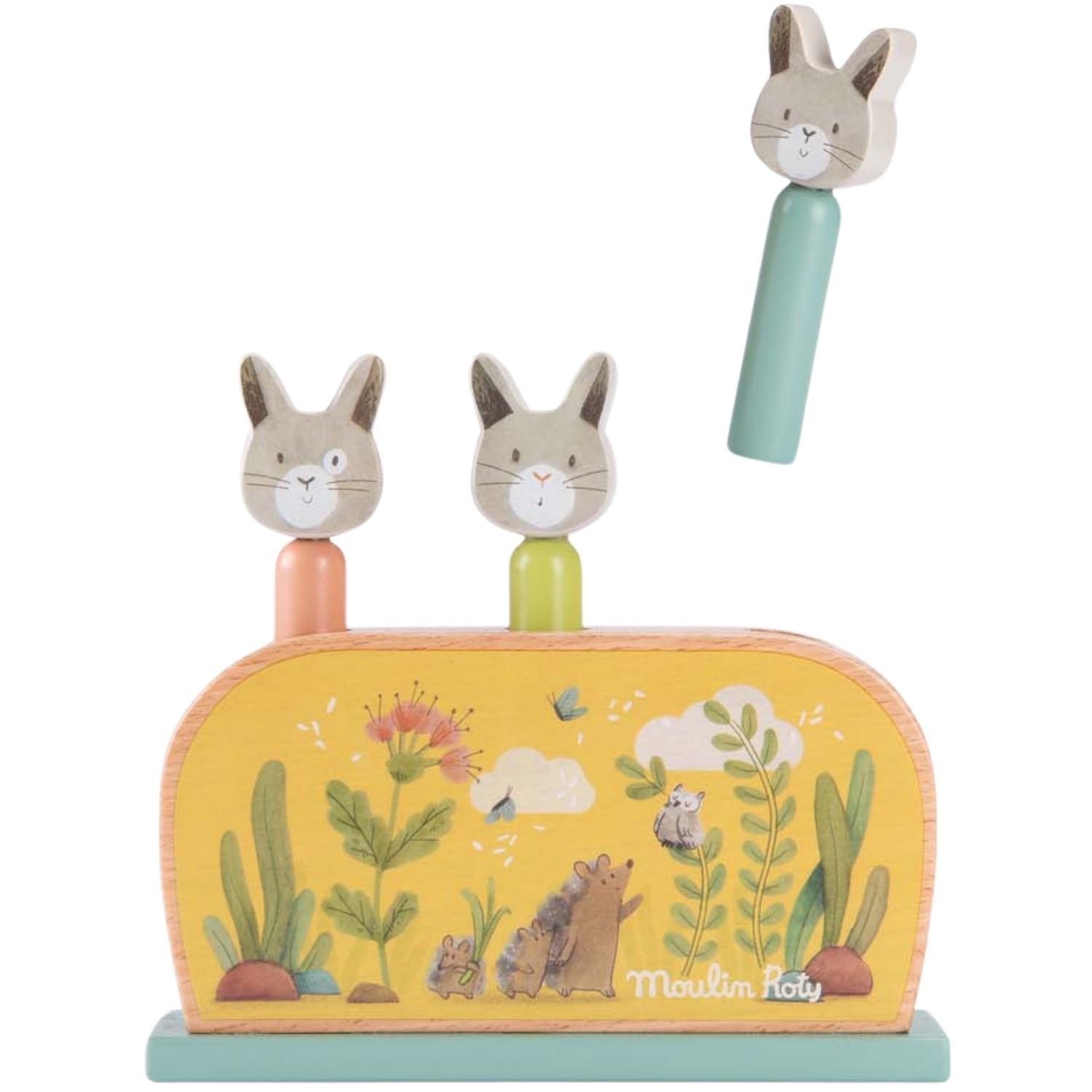 Découvrez le jouet Pop Up en bois – collection Trois petits lapins, un incontournable des jeux d’éveil dès 1 an. Ludique, simple et captivant, il se compose d’un socle en bois et de 3 adorables personnages lapins prêts à bondir et à amuser les tout-petits. Le principe est facile à comprendre : il suffit de placer les lapins dans les trous prévus à cet effet, puis d’appuyer délicatement sur leur tête pour les voir sauter hors de leur cachette. Une activité qui provoque rires et émerveillement à chaque bond !