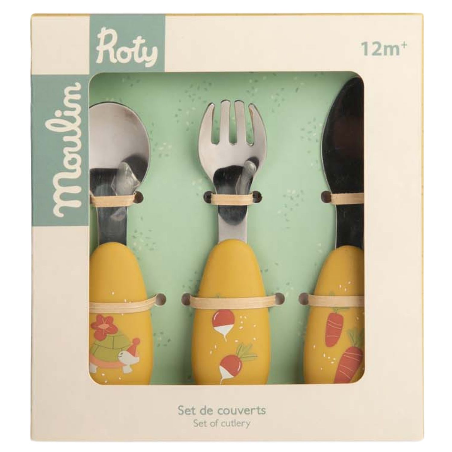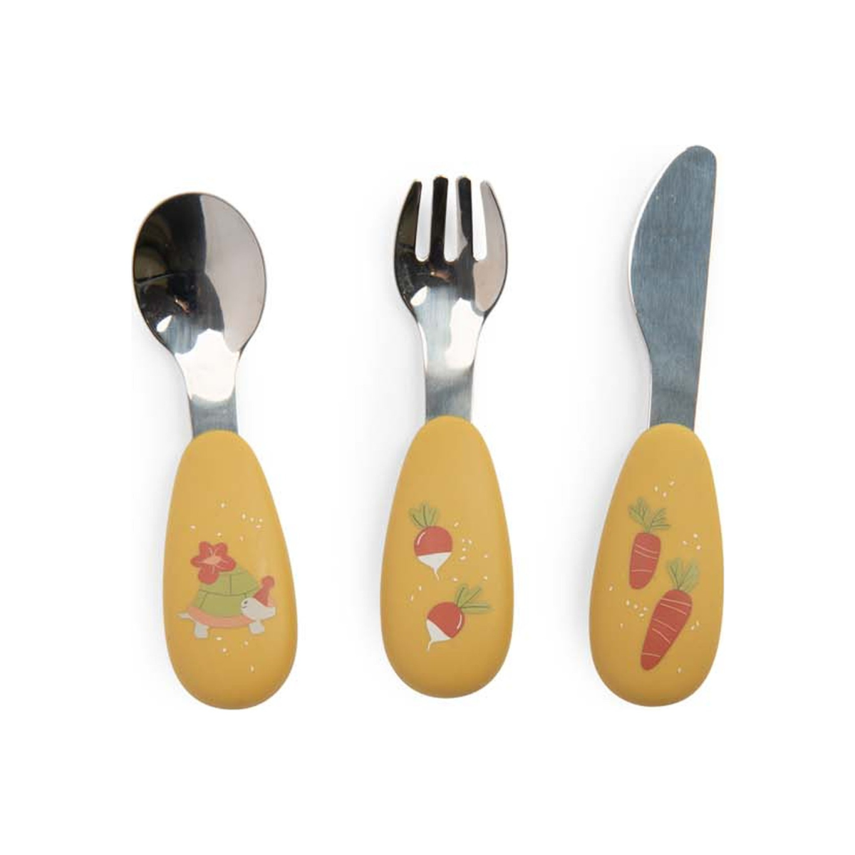 Pour rendre chaque repas encore plus agréable, les couverts sont joliment illustrés aux couleurs de la collection Trois Petits Lapins. Leur design doux et ludique encourage l’enfant à utiliser ses propres couverts et à développer son autonomie avec plaisir.