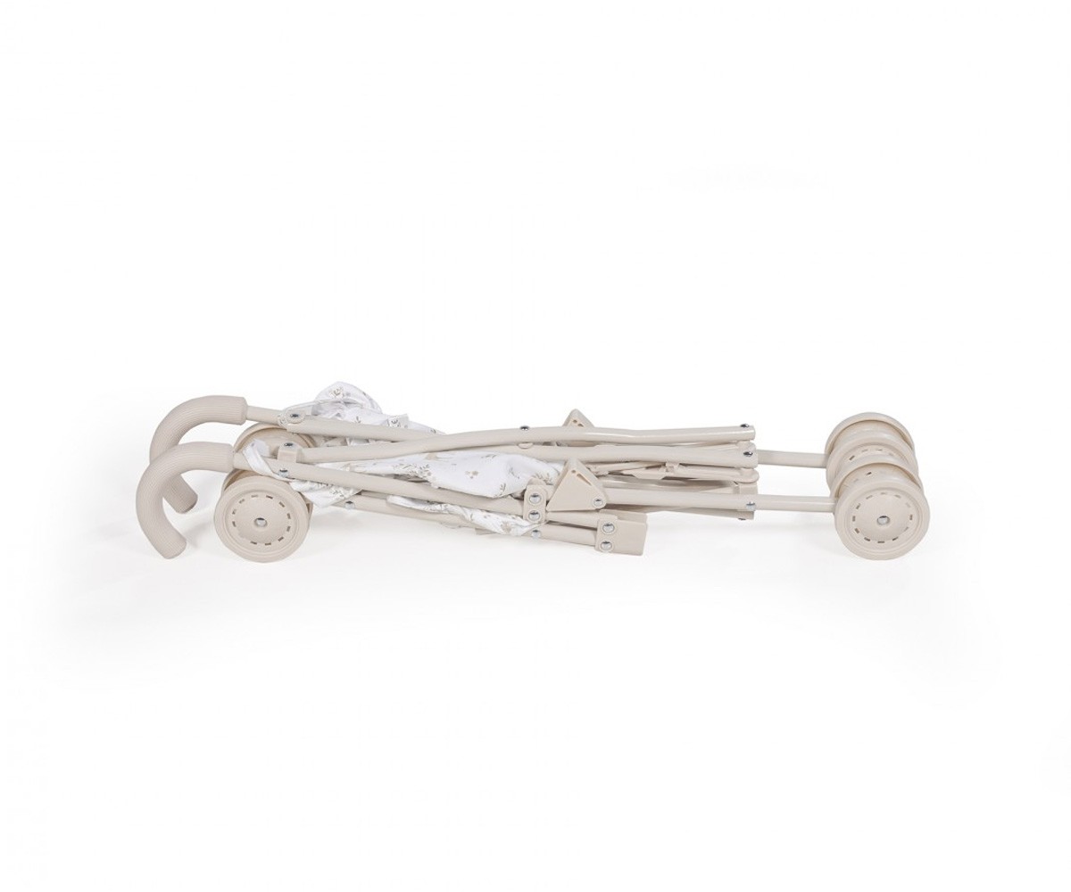 La poussette Cherry Flores se plie facilement, comme une véritable poussette canne, pour un rangement rapide et compact. Une fois pliée, elle mesure 63 cm de haut, ce qui permet de la glisser aisément dans un placard ou de l’emmener partout. Sa housse amovible en 100 % polyester se retire en un instant pour être lavée, assurant ainsi une hygiène parfaite après chaque aventure.