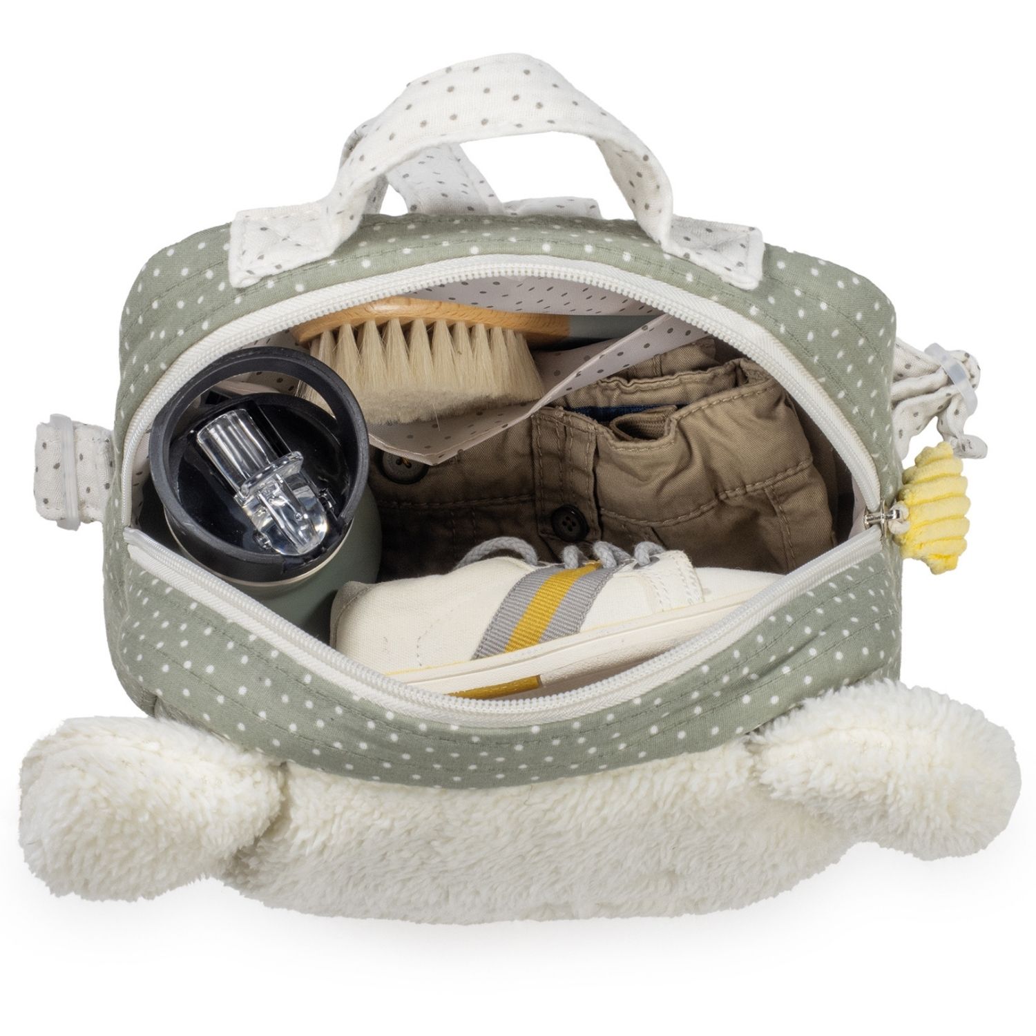 Ce sac à dos au look irrésistible raconte une véritable histoire. On imagine facilement un enfant fier de porter son premier sac, glissant ses petits trésors à l’intérieur avant de partir à la crèche ou chez les grands-parents. Avec son design tendre et réconfortant, le Sac Souris Poppy Moss devient un compagnon rassurant, presque comme un doudou à porter sur le dos.