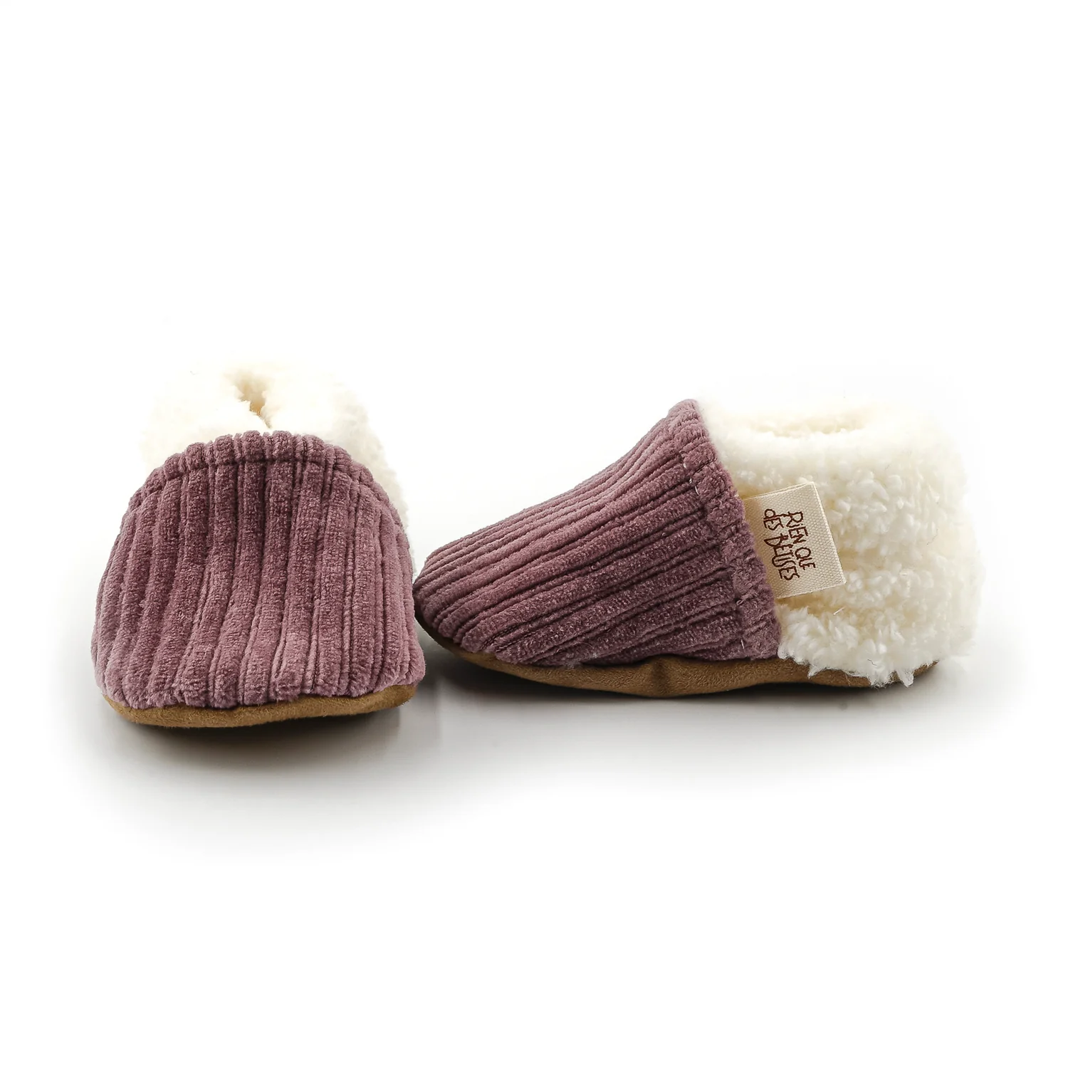Ces chaussons bébé séduisent immédiatement par leur velours côtelé parme, un tissu tendre, doux au toucher et naturellement chaud. Cette matière enveloppe délicatement les pieds des tout-petits et apporte une touche poétique à leurs premières tenues. Confortables et rassurants, ils deviendront vite un indispensable du quotidien.
