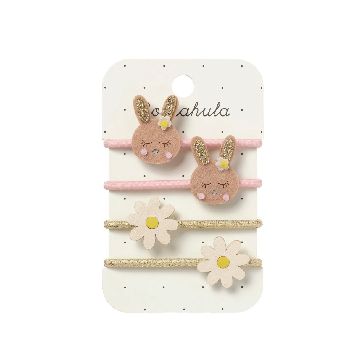 Sautez dans la saison avec style grâce à nos adorables poneys Bunny et Daisy, des accessoires aussi charmants que printaniers. Ce lot se compose de quatre élastiques délicatement décorés pour apporter une touche de fantaisie et de douceur à toutes les coiffures.