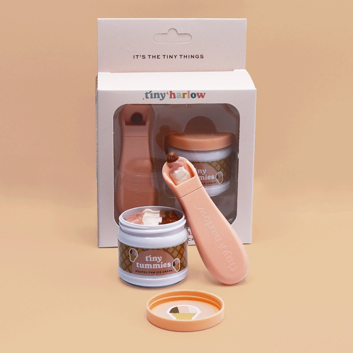 Offrez à vos poupées une délicieuse pause sucrée avec la glace Napolitaine Tiny Harlow Tiny Tummies ! Ce ravissant pot de glace est l’accessoire parfait pour les enfants qui adorent nourrir leurs poupées et inventer des histoires pleines de douceur. Après une longue journée de jeux, tout le monde mérite une petite gourmandise, et cette glace aux trois saveurs emblématiques — fraise, vanille et chocolat — est idéale pour combler toutes les envies sucrées. Avec ses couches colorées et son parfum gourmand, elle semble presque réelle !