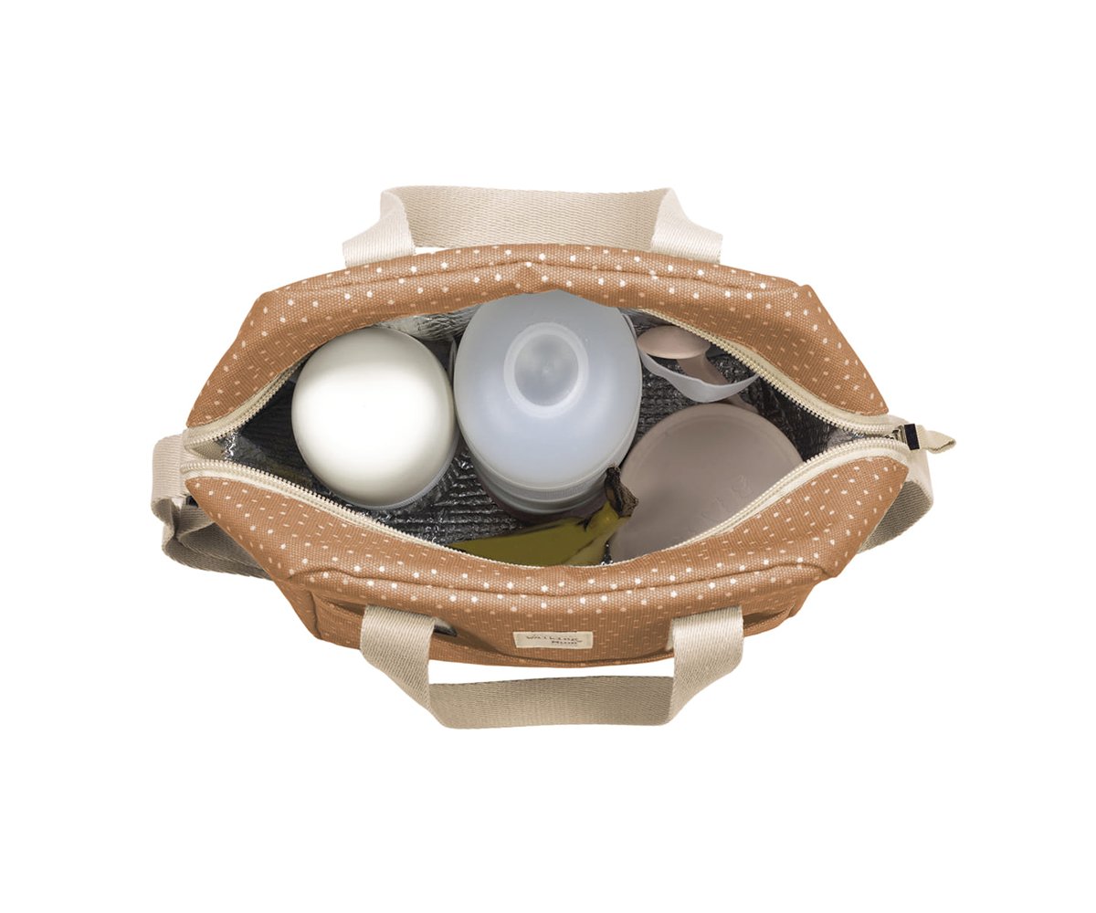 Doté de deux anses courtes et d’une sangle longue, le sac Poppy Canela peut être porté à la main ou suspendu à l’épaule, offrant ainsi une flexibilité de transport adaptée à toutes les situations. À l’intérieur, un espace généreux attend vos repas, tandis que trois supports élastiques garantissent la stabilité des biberons, pots et bouteilles isothermes, même durant les promenades les plus mouvementées.